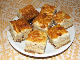 Egy kisebb tepsit (kb. 25x35cm) vastagon kikenek margarinnal. A lisztet elkeverem, a cukorral, a vaníliás cukorral, a sóval és a sütőporral, majd a felét egyenletesen a kikent tepsibe szórom, a másik felét félre teszem, míg a tölteléket elkészítem.